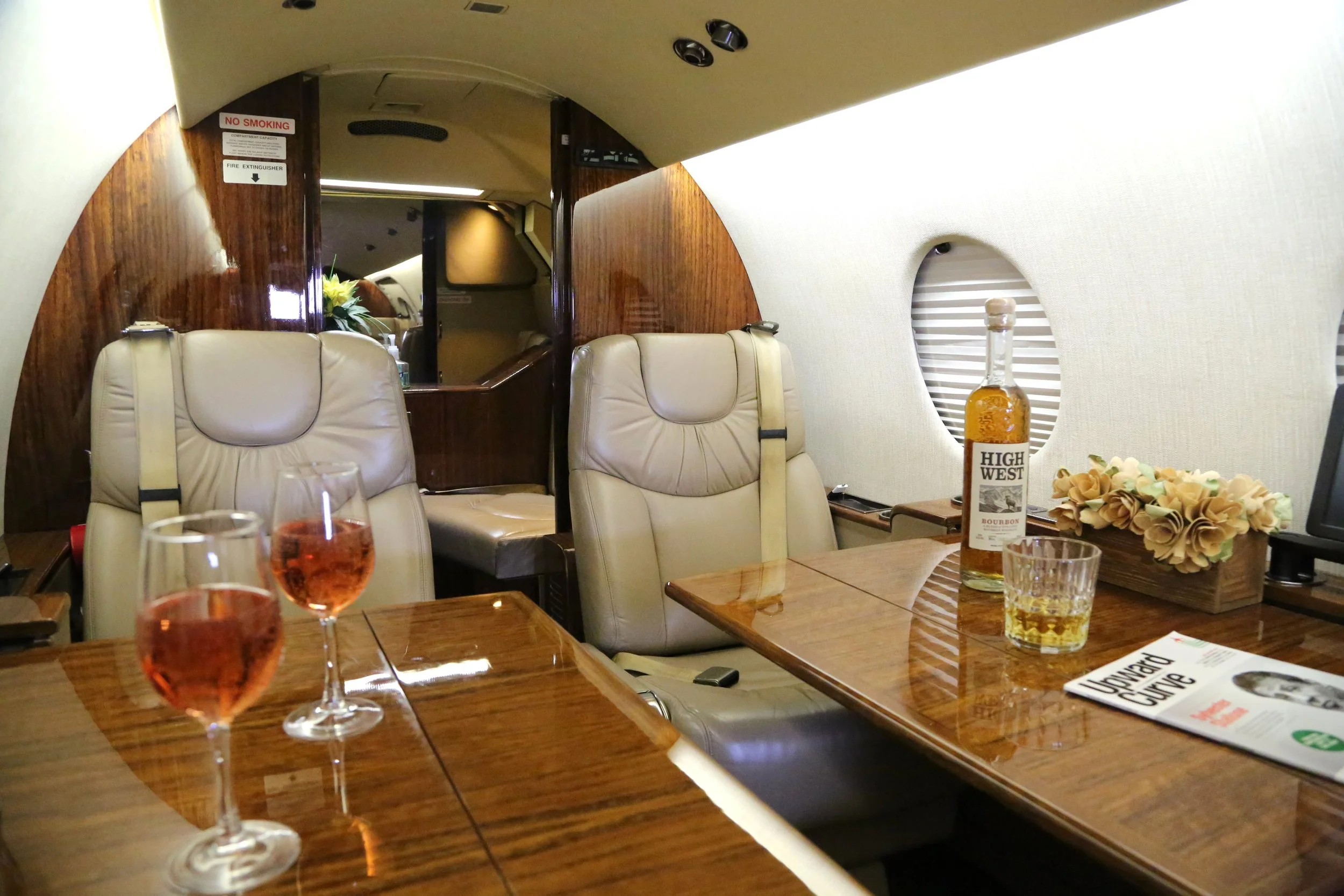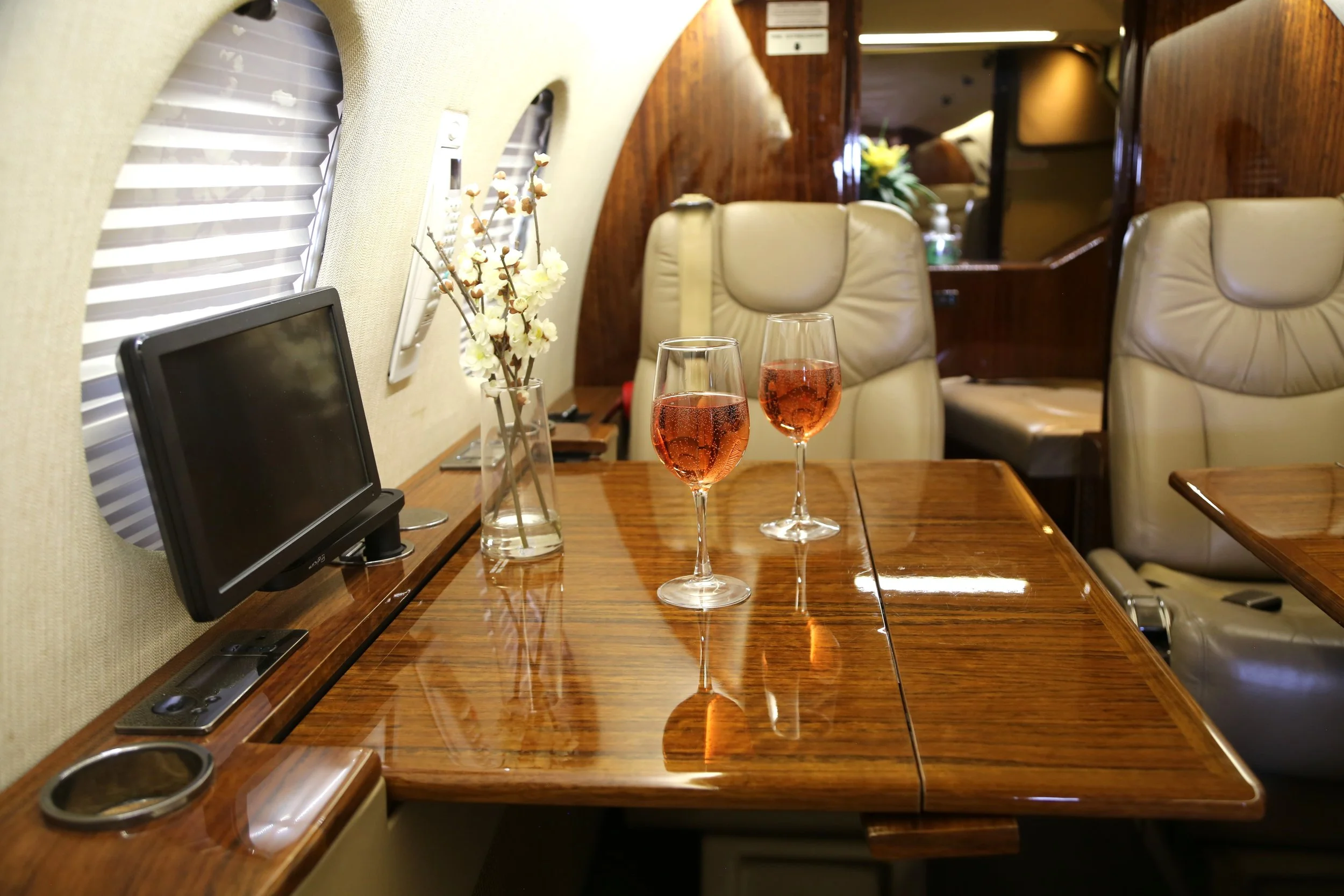 • Amenities : Deluxe leather seating, aft lavatory, forward galley, 110V power outlets, Airshow, Wifi